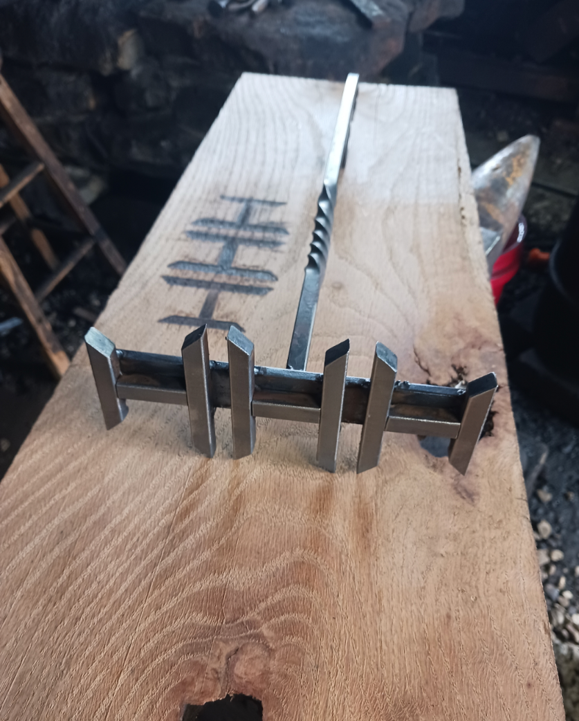 Processing time is typically about 2 weeks, which is the same for any of our hand forged items since each one is handmade to order. Custom orders with multiple pieces, complex designs, or that require us to special order raw materials may take longer. A processing time estimate will be provided with your price quote.