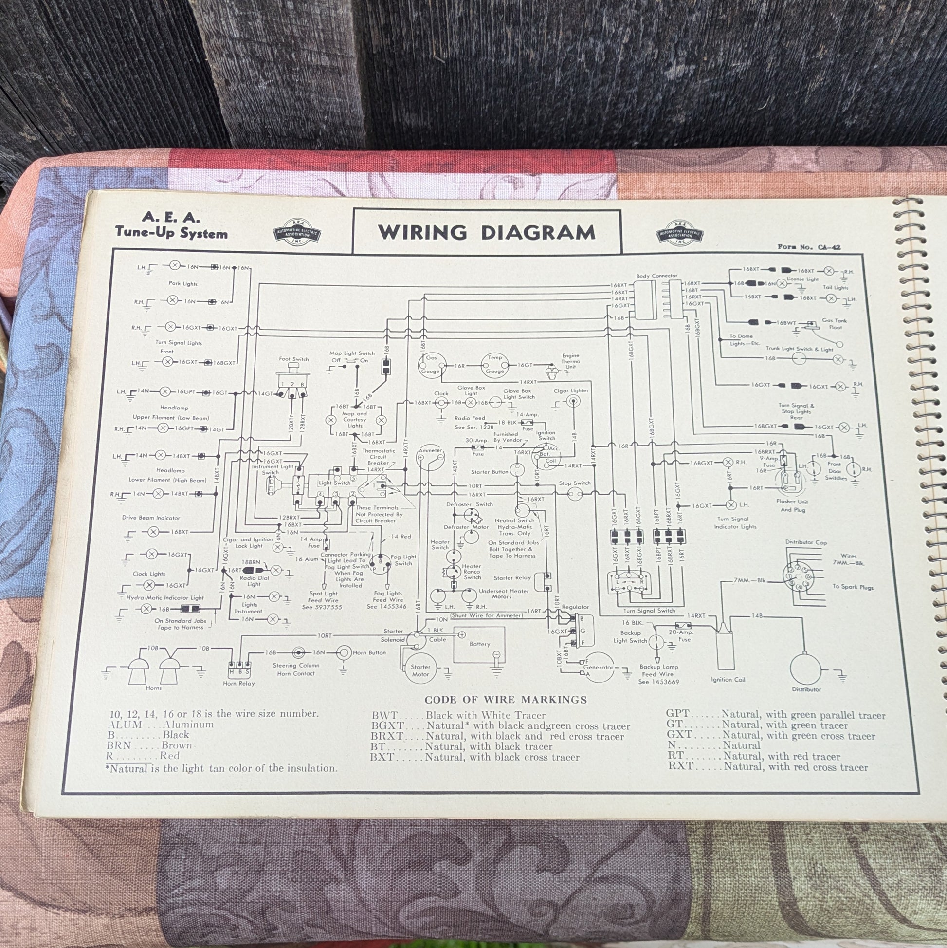 1939 A.E.A. Tune-Up Specification Charts. Designed for service stations who used the American Electric Association tune-up charts. Each entry has a wiring diagram and specifications for the following 1949 models: Buick Eight, Cadillac Eight, Chevrolet Six, Chrysler Six, Chrysler Eight, Crosley Four, De Soto Six, Dodge Six, Ford Six, Ford Eight, Frazer Six, Hudson Six, Hudson Eight, Kaiser Six, Lincoln Eight, Mercury Eight, Nash Six, Oldsmobile Six, Oldsmobile Eight, Packard Eight, Packard Super Eight, Packard Custom Eight, Plymouth Six, Pontiac Six, Pontiac Eight, Studebaker Six, Willy's Four and Willy's Six.