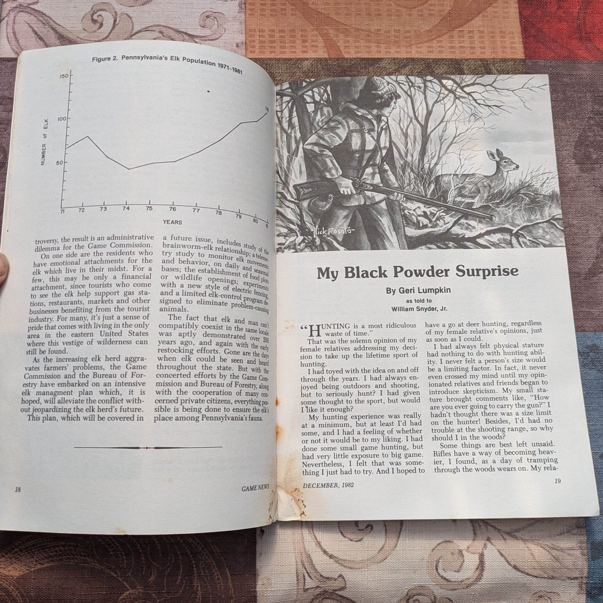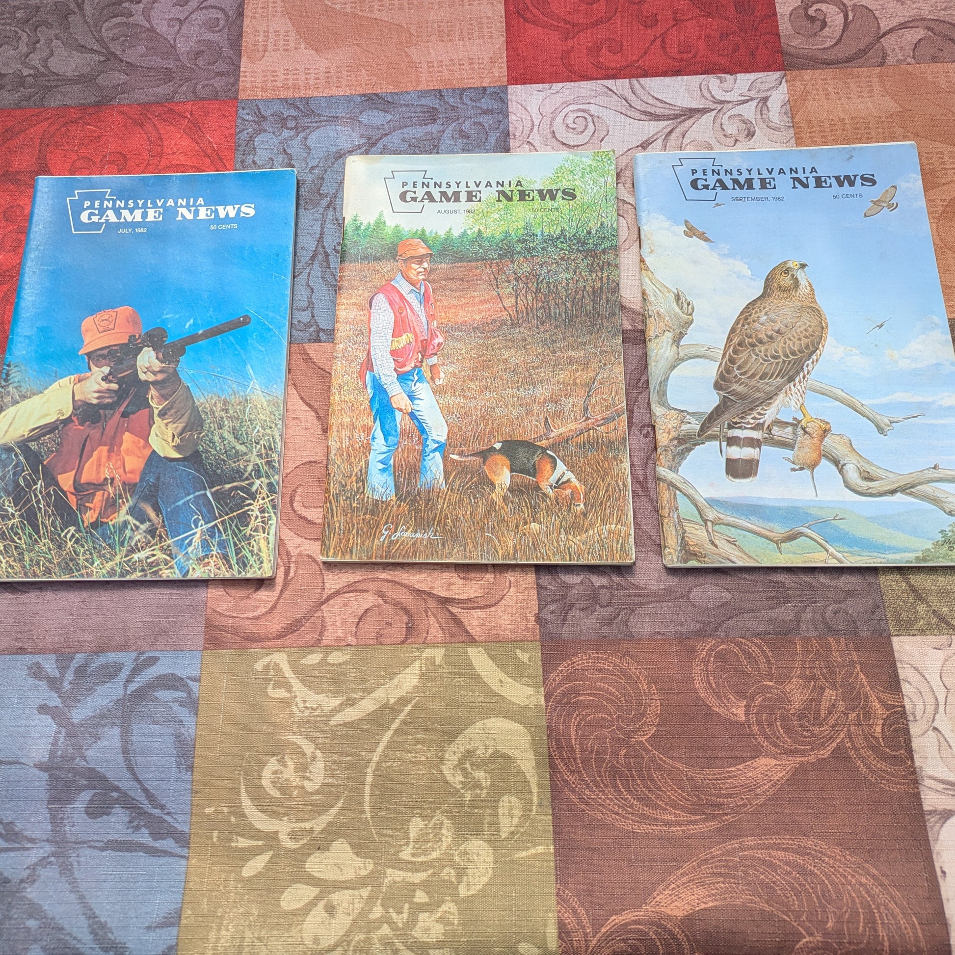 Set of 12 vintage Pennsylvania Game News magazines, all 12 months of 1982. All issues feature full color cover artwork or photogy. Features black and white illustrations and photos inside. They feature articles on Pennsylvania game animals, hunting stories, changes to regulations, history and more. Great decor or reading material for cabins, camps, and lodges!