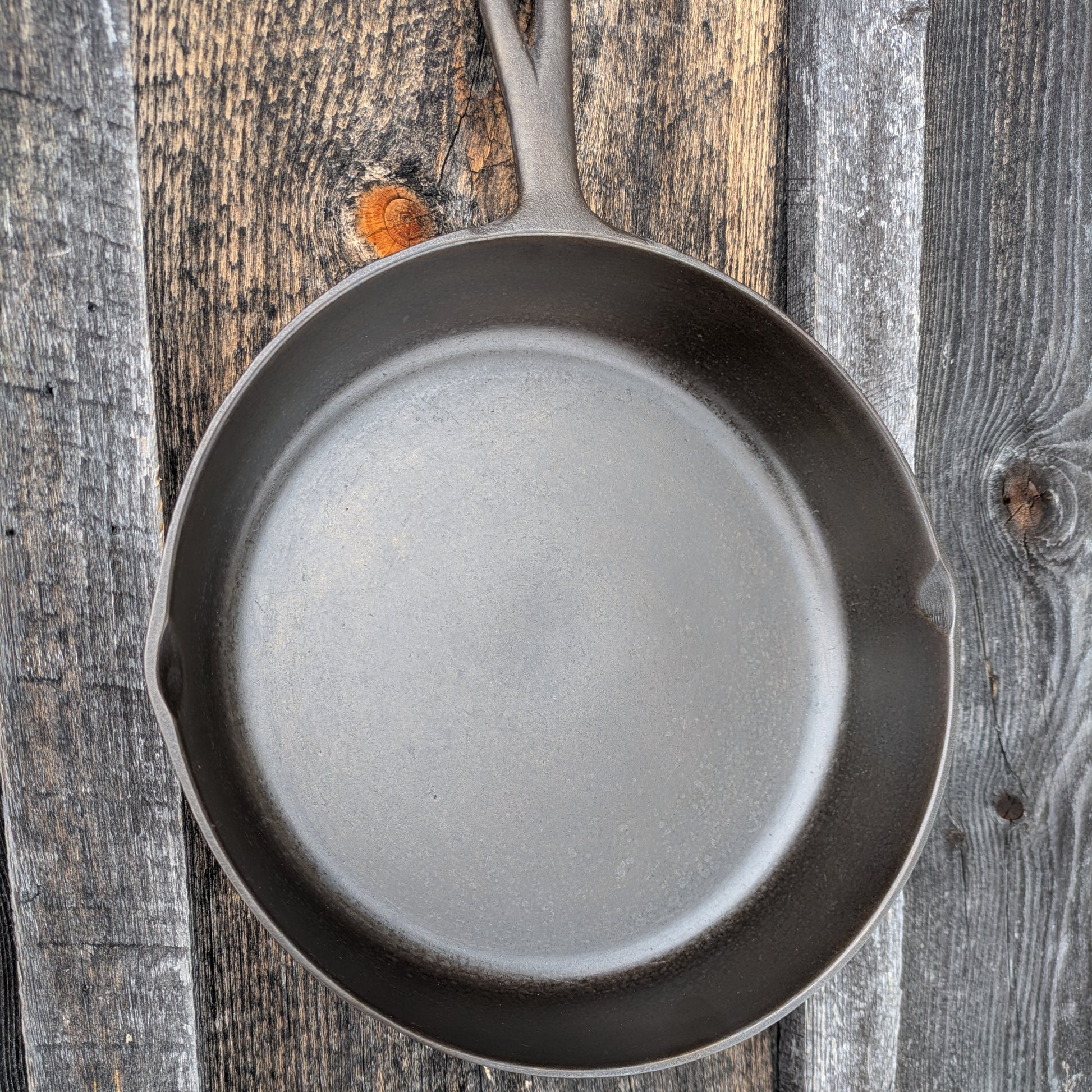 This piece of vintage Americana is in great condition for its age but please review all photos for more details on condition. No cracks or chips. Slight wobble, about one card, not suitable for glass top stoves. Professionally restored by electrolysis and given several coats of grapeseed oil seasoning. Great for everyday cooking or as a functional piece of decor.