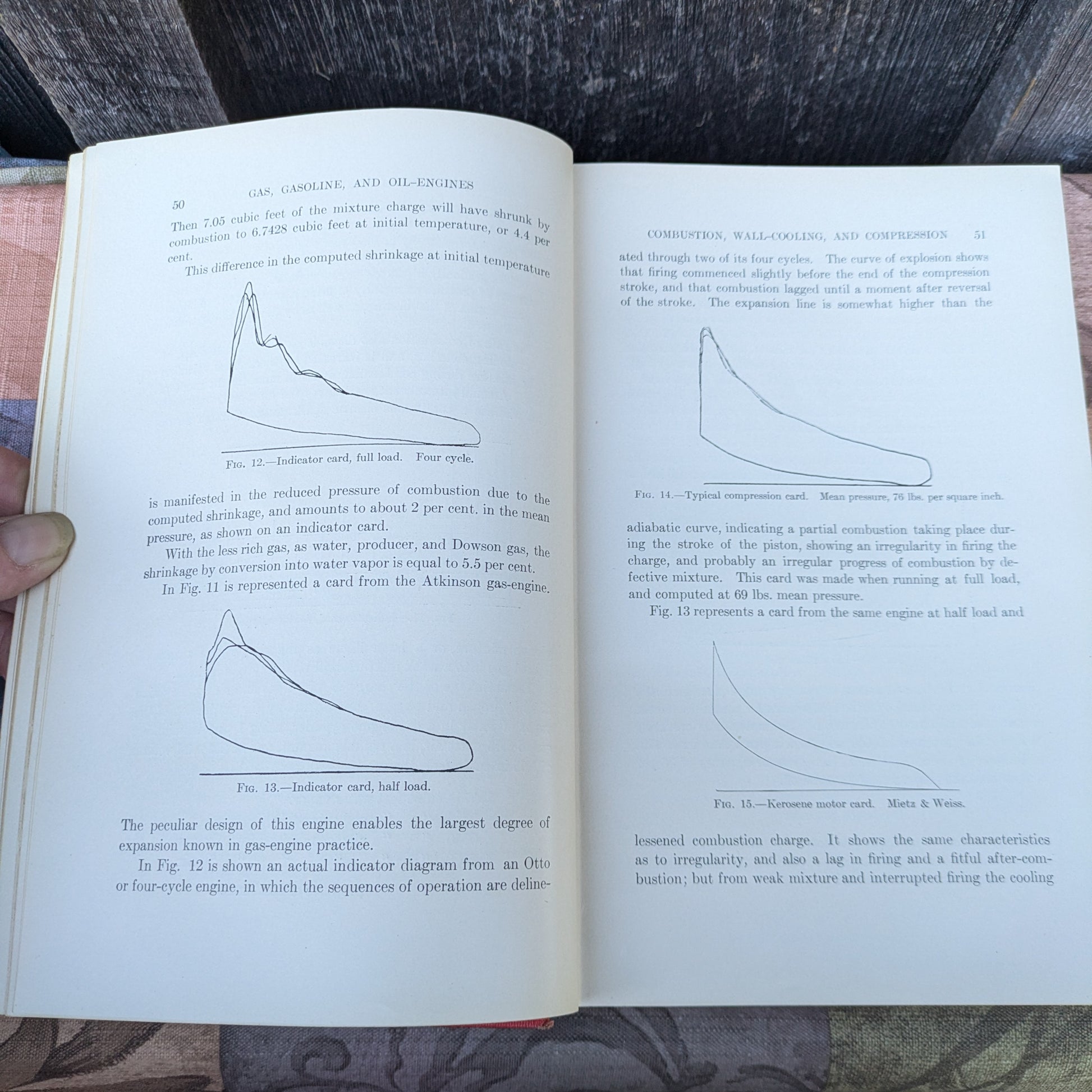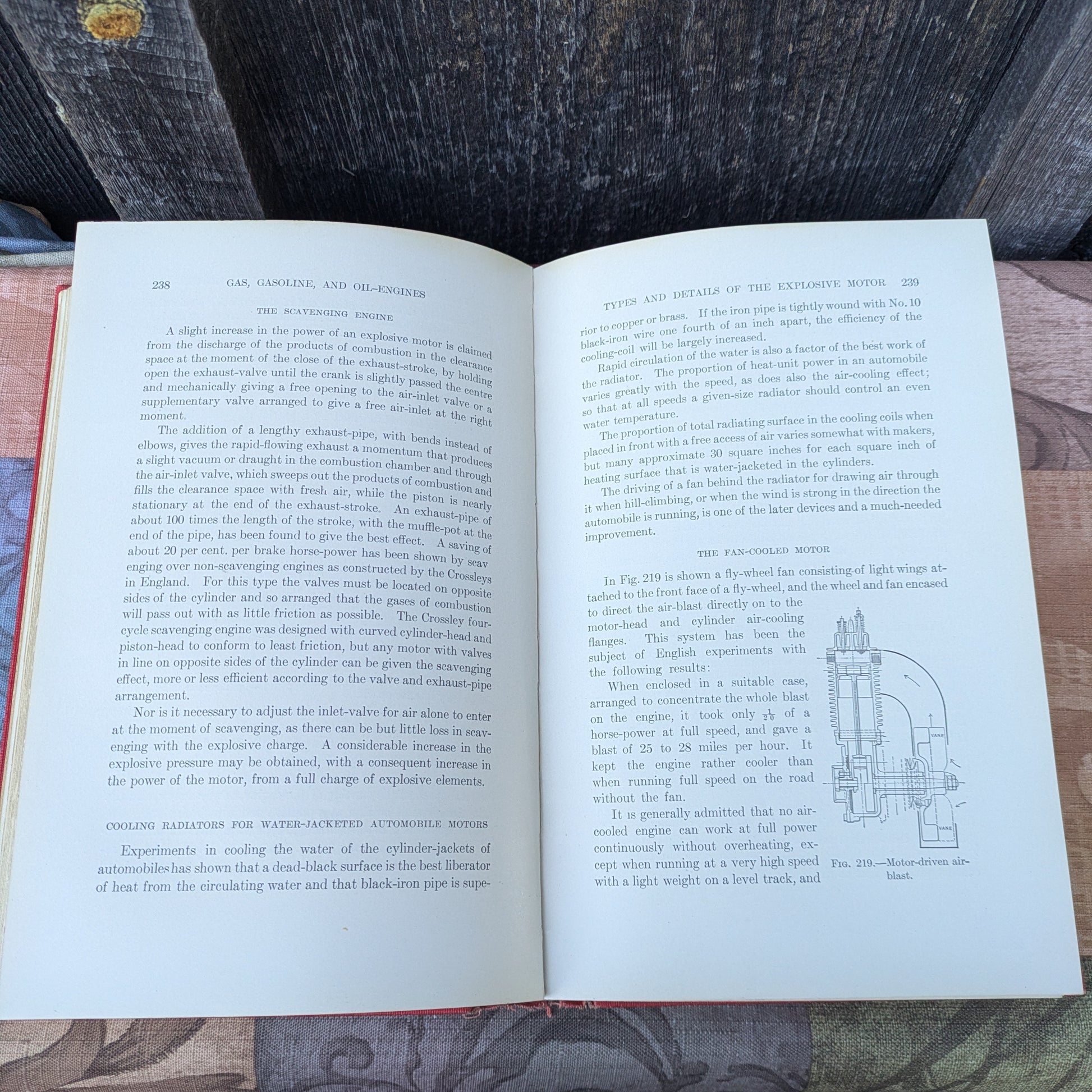 1906 edition of Gas, Gasoline, and Oil-Engines Including Producer-Gas Plants by Gardner D. Hiscox. Hardcover, fifteenth edition of a book originally published in 1897. Includes a list of U.S. patents related to gas engines and illustrated with 351 black and white engravings. Published in New York by the Norman W. Hensley Publishing Company. 442 pages including index, plus a number of pages of advertising -both for motors and components as well as other books by the publisher.