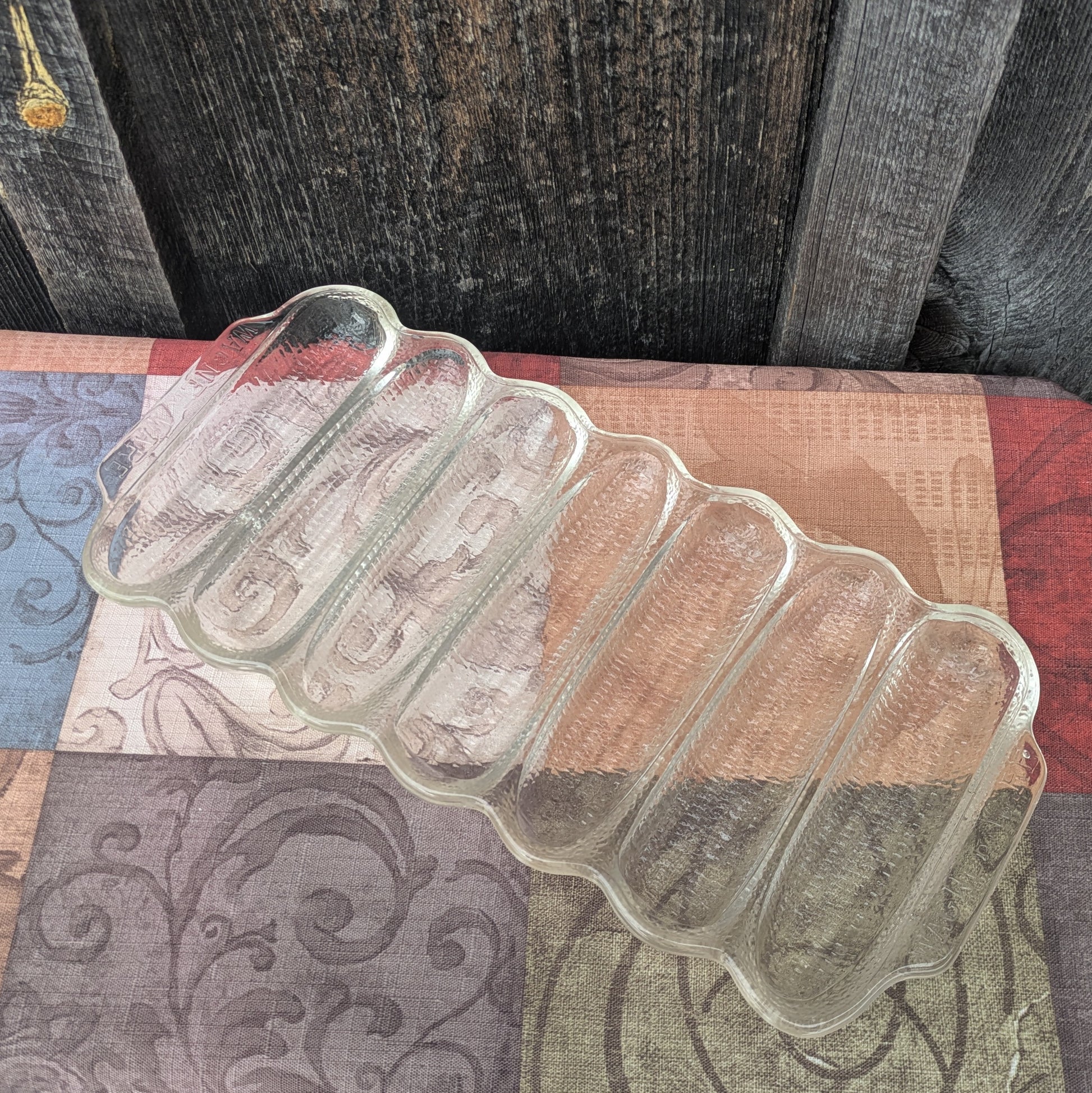 Vintage Wagner Ware 7 slot corn stick cornbread pan. Made by Wagner Ware of Sidney, Ohio, these glass baking pans were produced in the 1940's when iron and aluminum were being rationed as they were important for making equipment for WWII. This pan is 13" long and 6" wide and will make 7 corn cob shaped pieces. Perfect for cornbread! It is marked Wagner Ware on both handles.