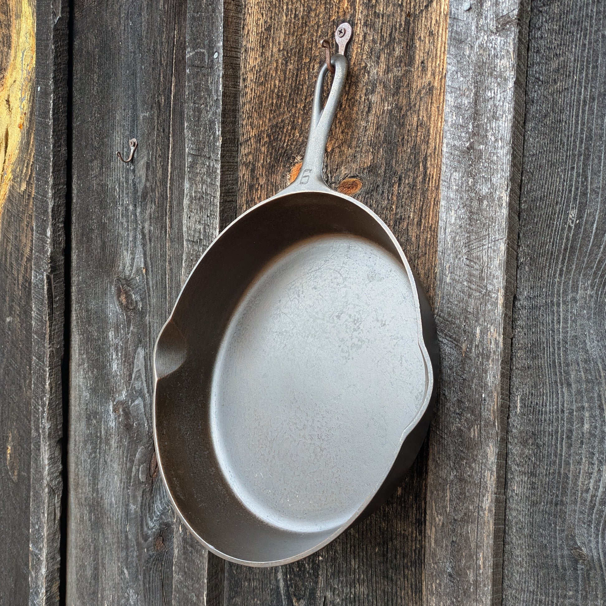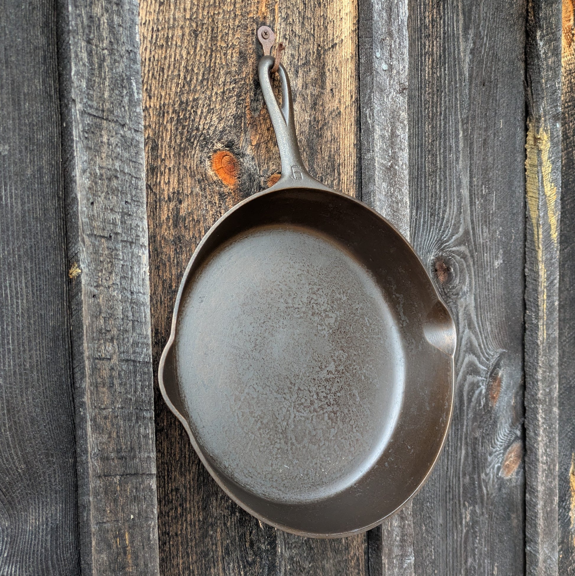 It is rust free, professionally restored via electrolysis. It has been seasoned with multiple coats of grapeseed oil. Ready for use or display.