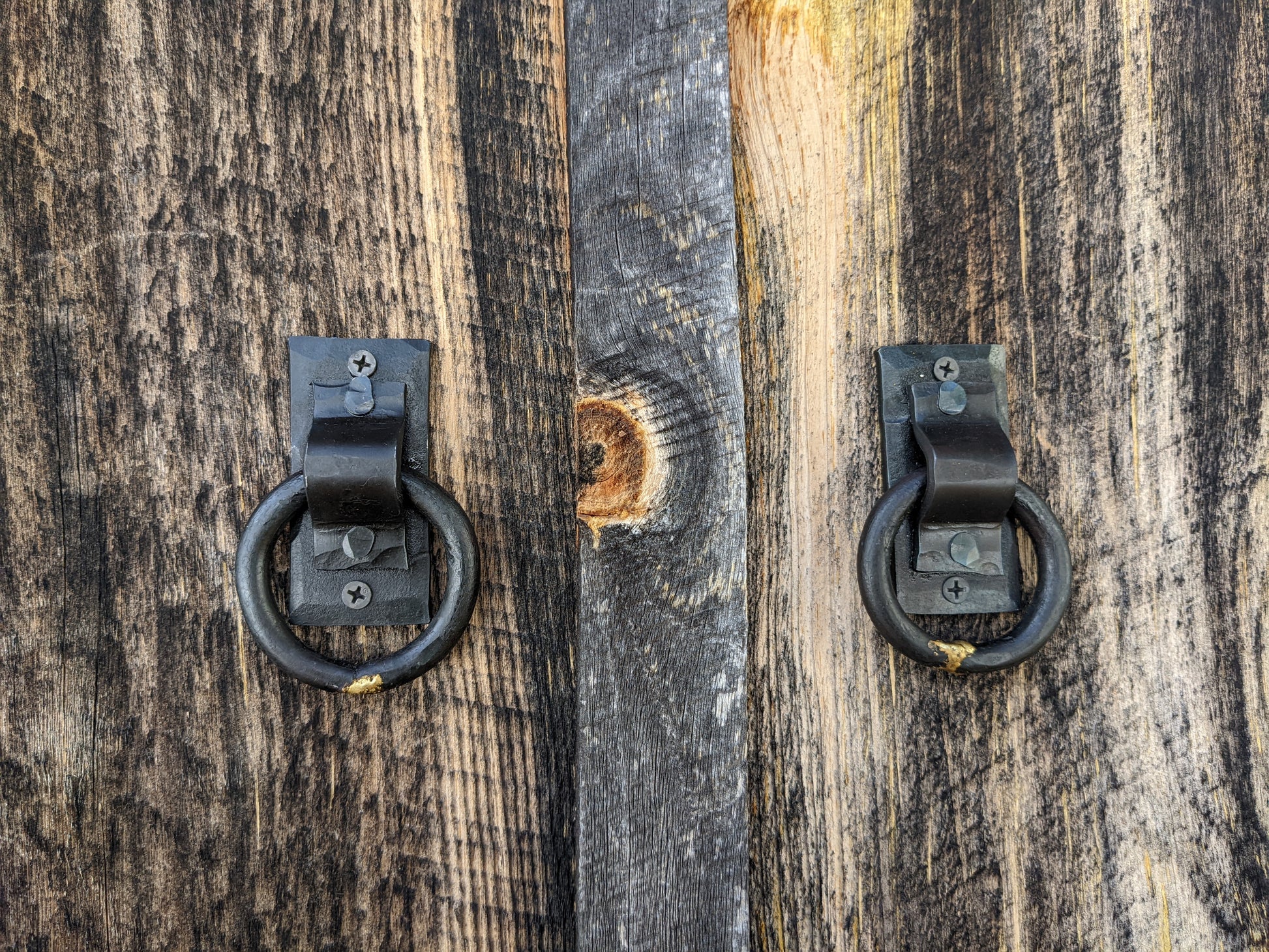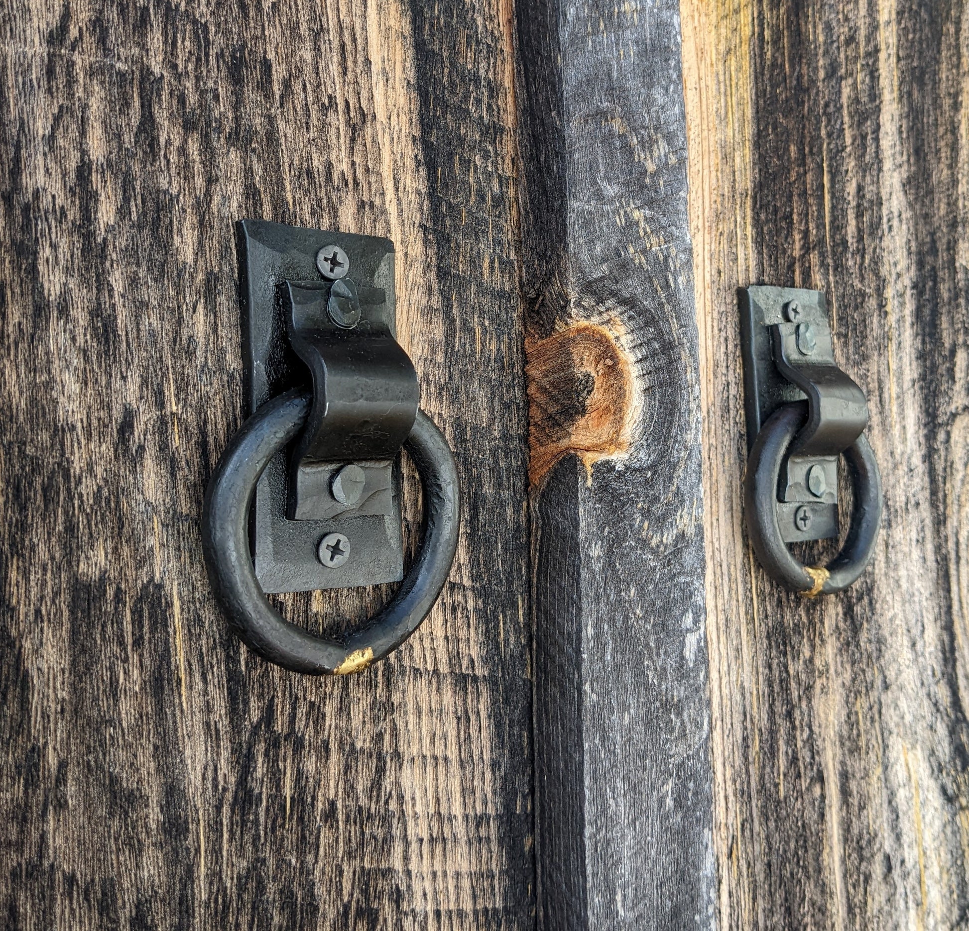 Set of 2 Small Brazed Round Ring Hand Forged Handles, Door Pulls, Trunk Handles, Tie Downs